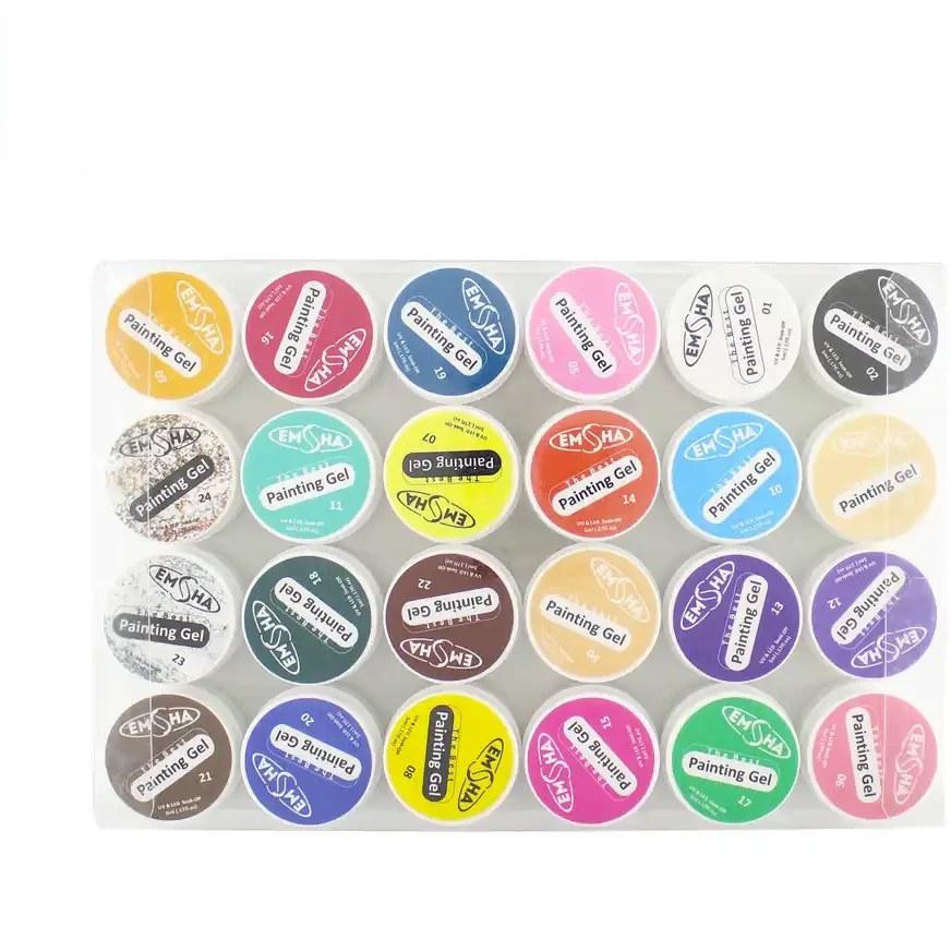 پک ژل طراحی Emsha شامل ۲۴ رنگ جذاب و متنوع است که به شما امکان میدهد هر طرحی را با ترکیب رنگهای مختلف و خلاقیت خود اجرا کنید. این پک برای ناخنکاران حرفهای و علاقهمندان به طراحی ناخن یک گزینه ایدهآل است.